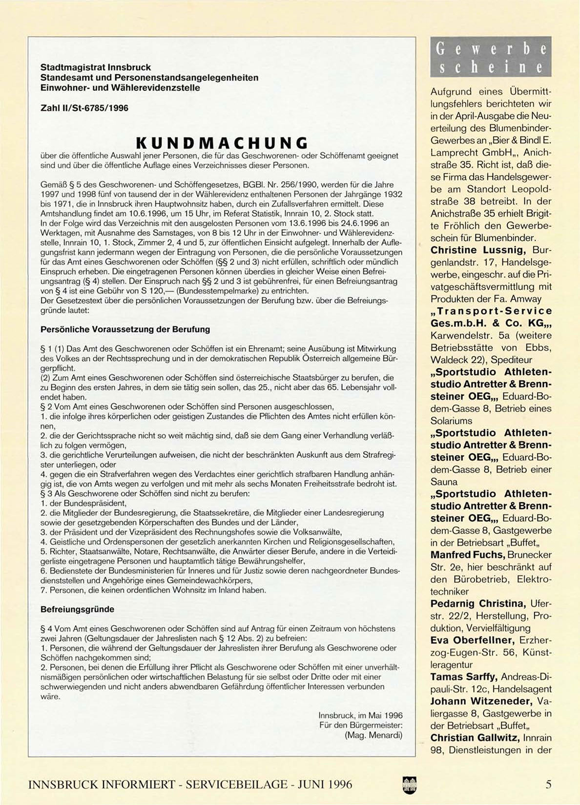INNSBRUCK INFORMIERT - SERVICEBEILAGE - JUNI 1996