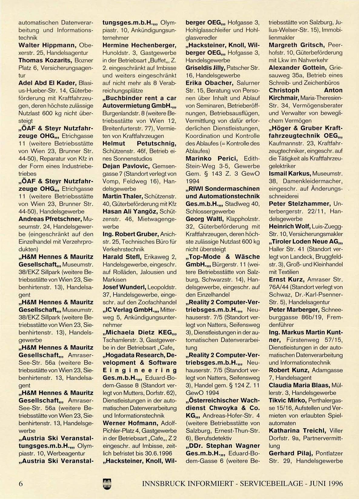 INNSBRUCK INFORMIERT - SERVICEBEILAGE - JUNI 1996