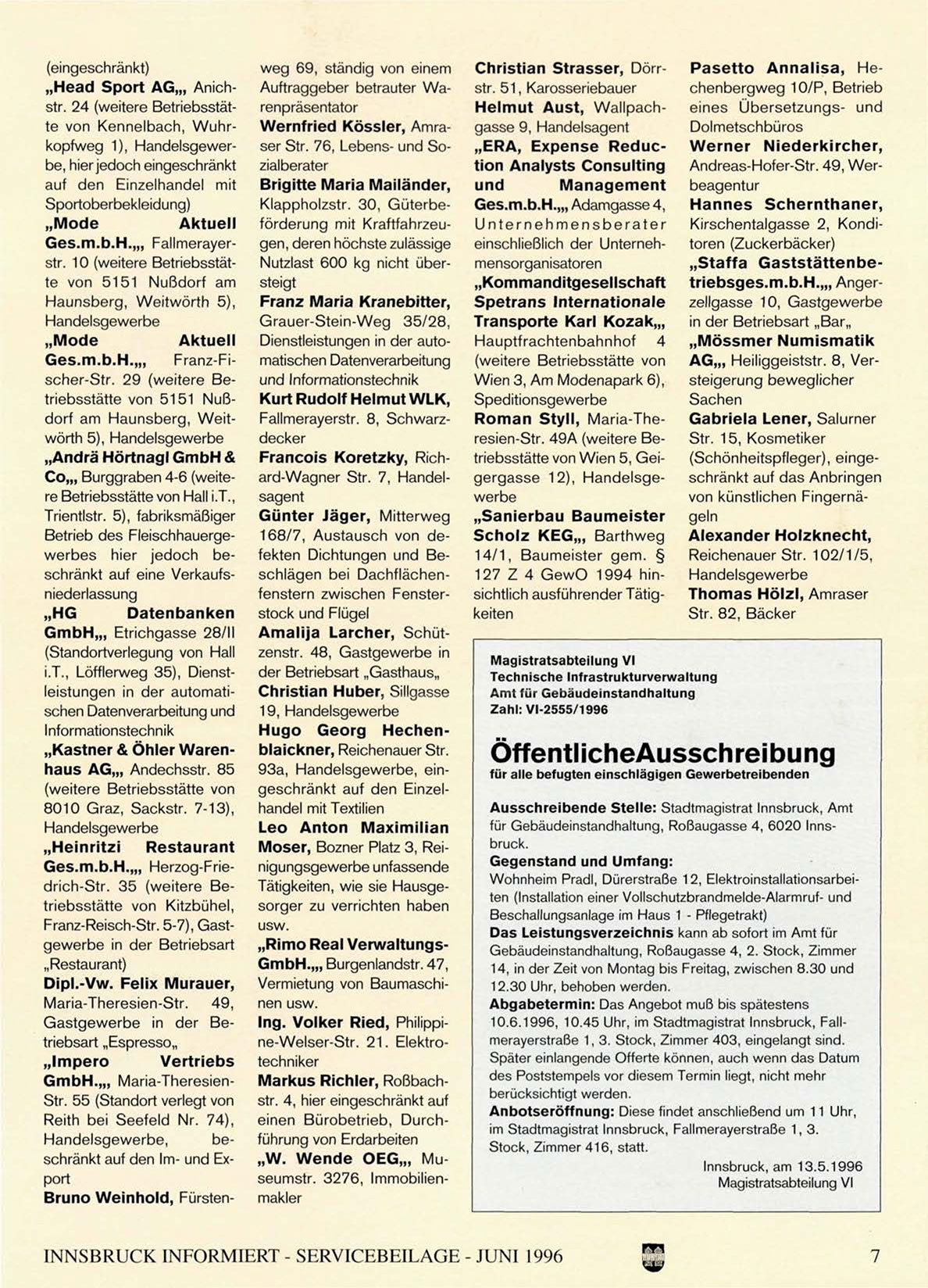 INNSBRUCK INFORMIERT - SERVICEBEILAGE - JUNI 1996