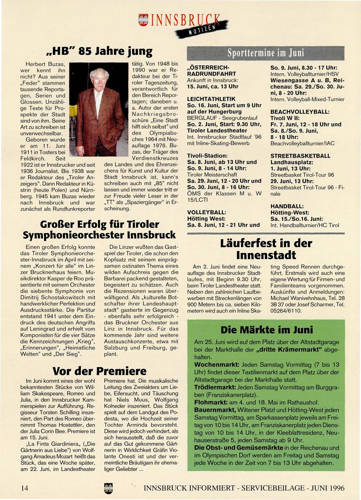 INNSBRUCK INFORMIERT - SERVICEBEILAGE - JUNI 1996