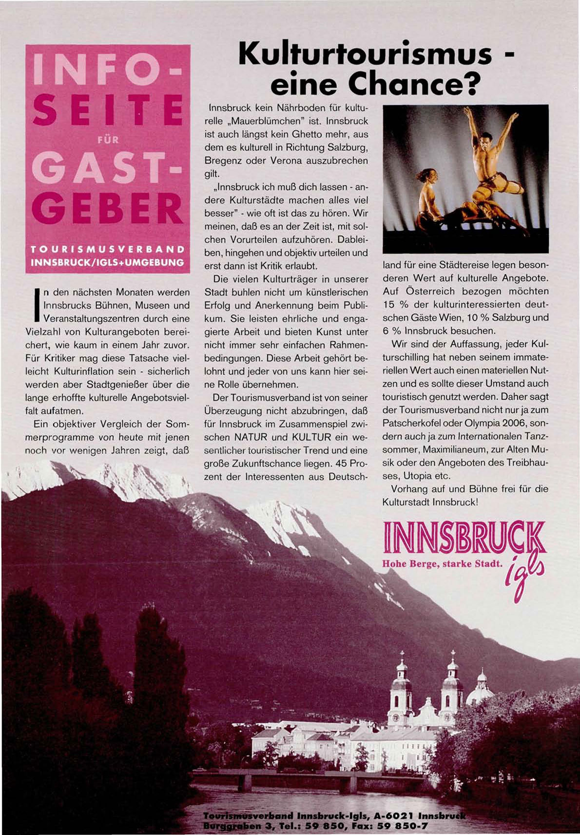 Innsbruck kein Nährboden für kulturelle „Mauerblümchen" ist. Innsbruck