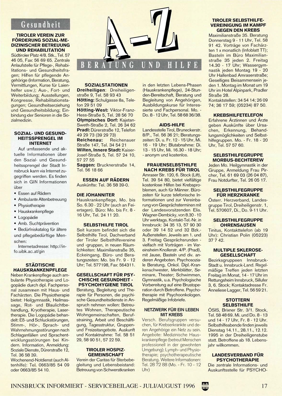 INNSBRUCK INFORMIERT - SERVICEBEILAGE - JULI/AUGUST 1996