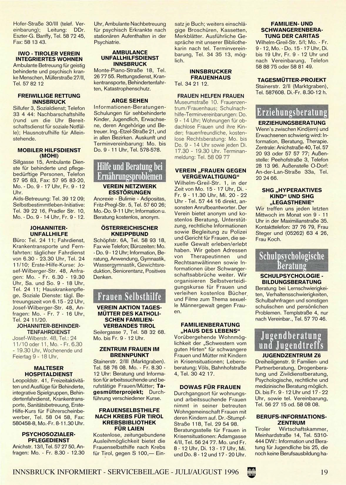 INNSBRUCK INFORMIERT - SERVICEBEILAGE - JULI/AUGUST 1996