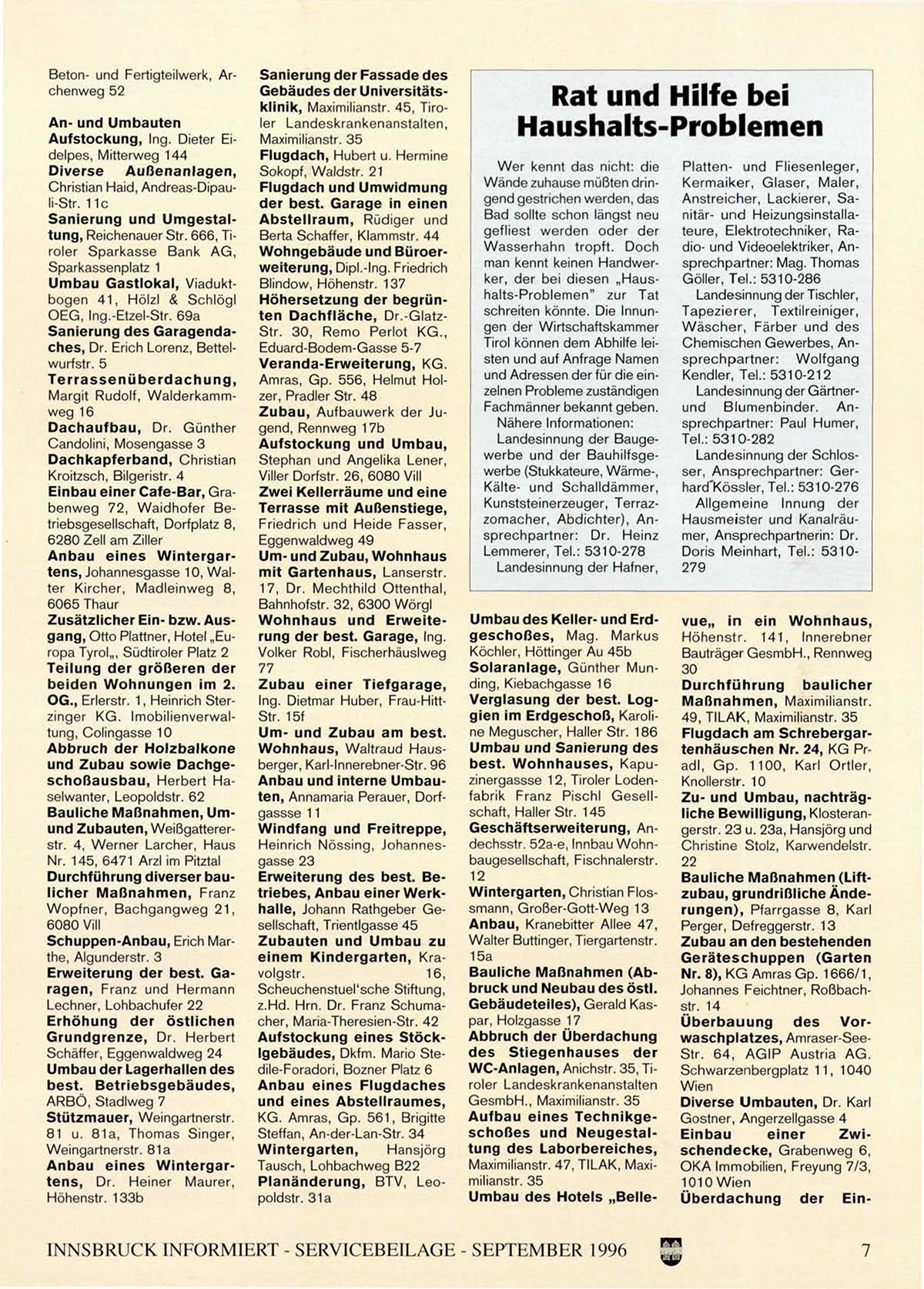 INNSBRUCK INFORMIERT - SERVICEBEILAGE - SEPTEMBER 1996