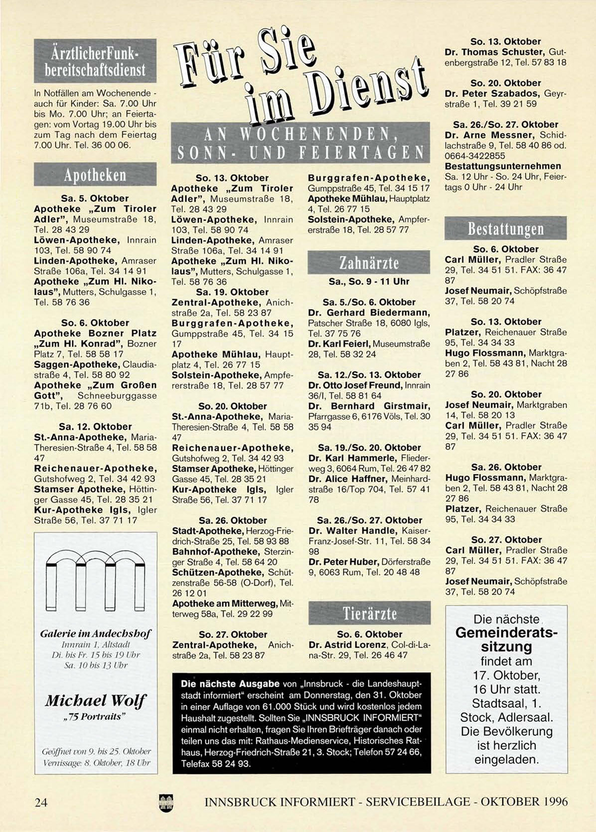 INNSBRUCK INFORMIERT - SERVICEBEILAGE - OKTOBER 1996