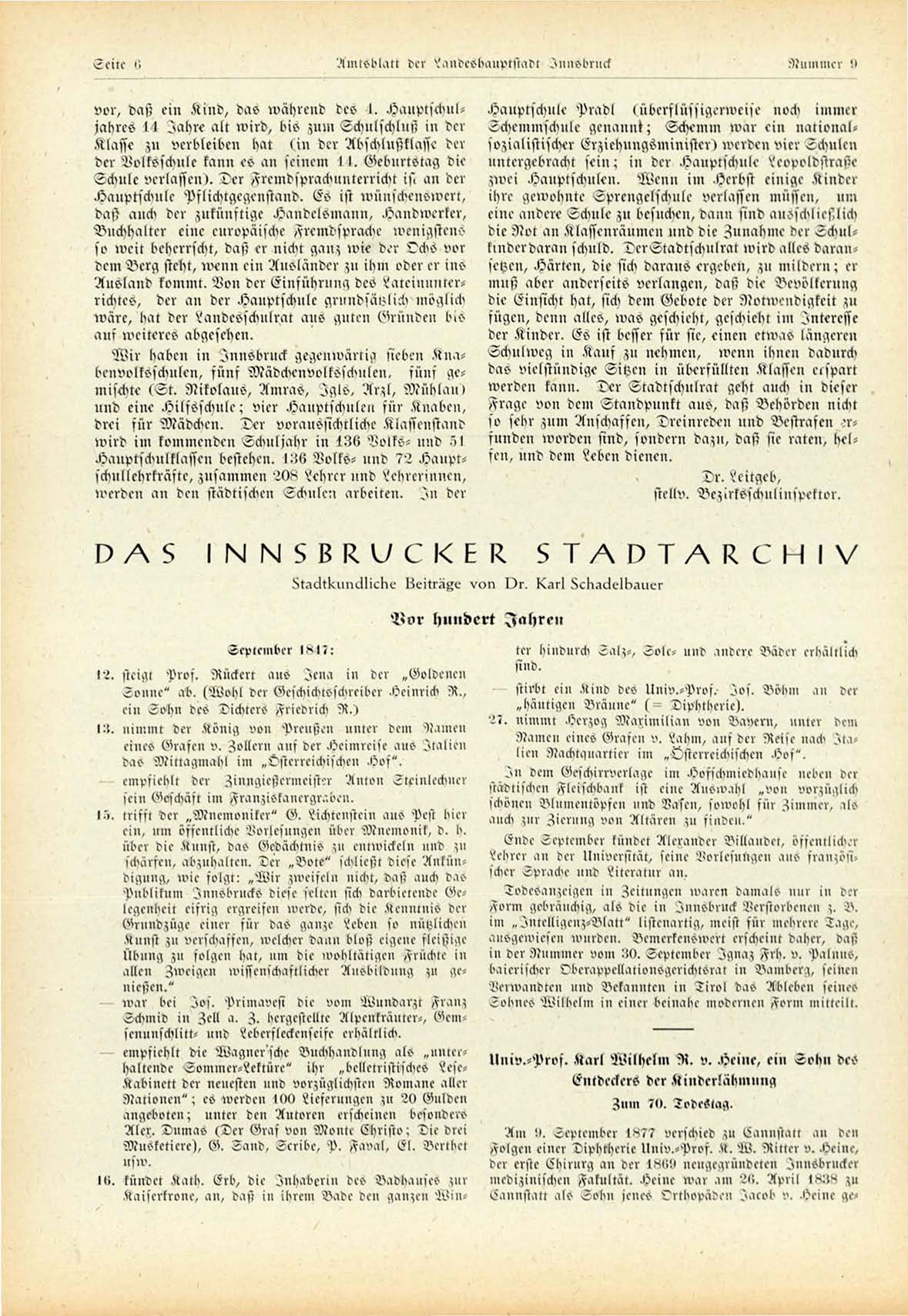 W i r haben in Innsbrnck gegenlvärtig sieben Knabcnvolkssckuleu, füns Mädchenvolksschulen, füus gemischte ( S t . Nikolaus, Annas, I g l s , Arzl, Müblau»