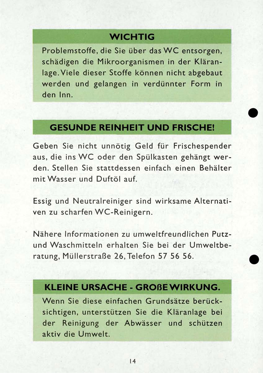 Nähere Informationen zu umweltfreundlichen Putzund Waschmitteln erhalten Sie bei der Umweltberatung, Müllerstraße 26,Telefon 57 56 56.