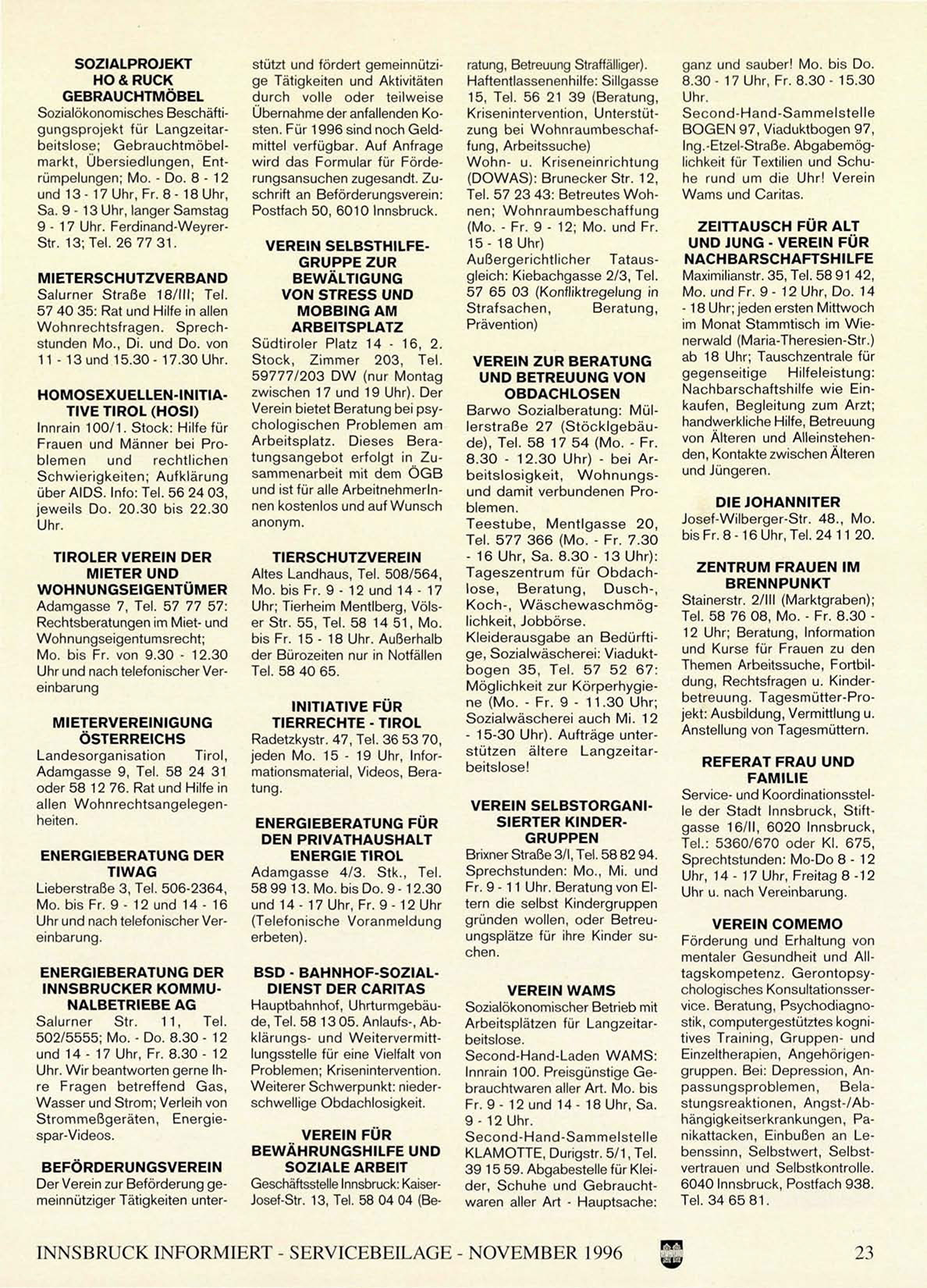 INNSBRUCK INFORMIERT - SERVICEBEILAGE - NOVEMBER 1996