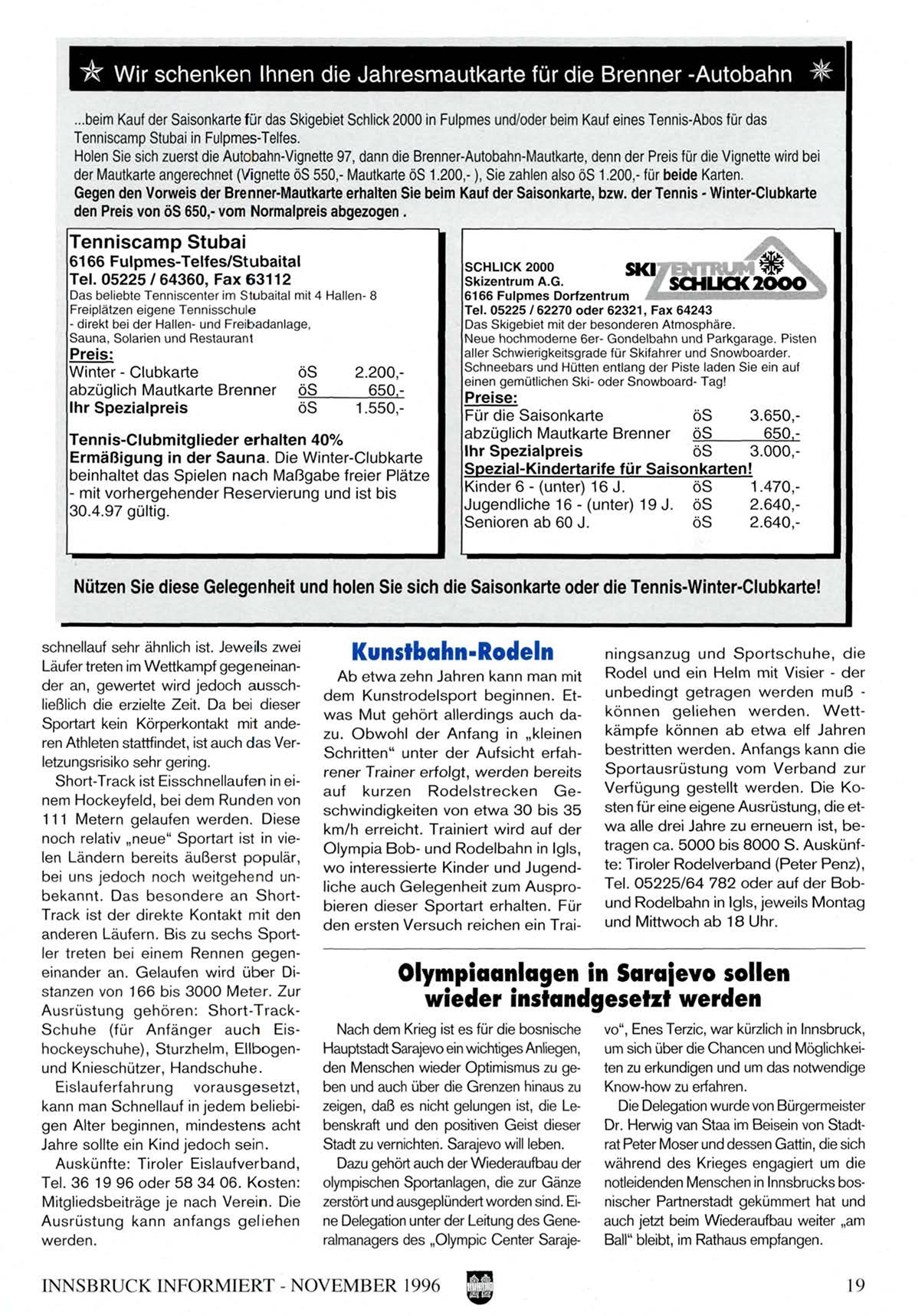 INNSBRUCK INFORMIERT - NOVEMBER 1996
