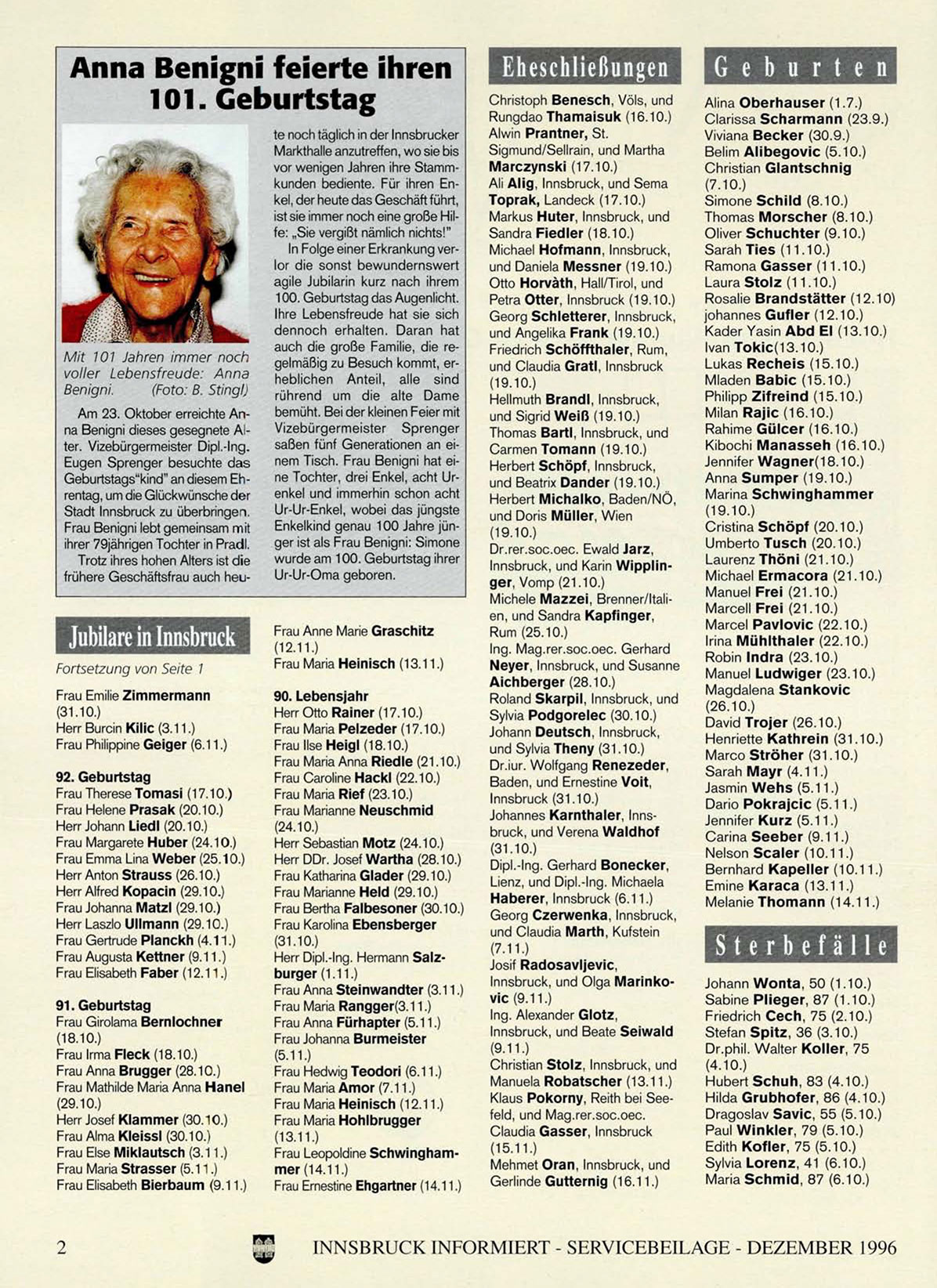 INNSBRUCK INFORMIERT - SERVICEBEILAGE - DEZEMBER 1996
