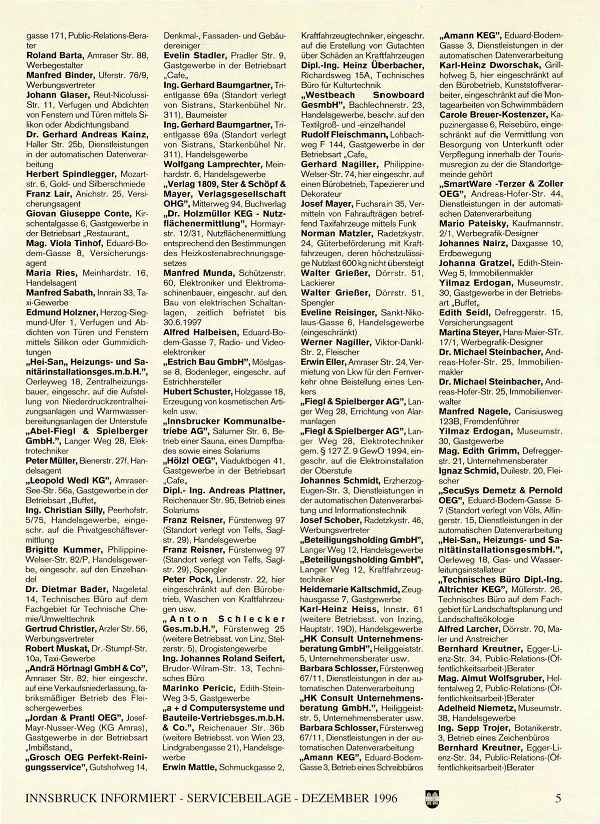 INNSBRUCK INFORMIERT - SERVICEBEILAGE - DEZEMBER 1996