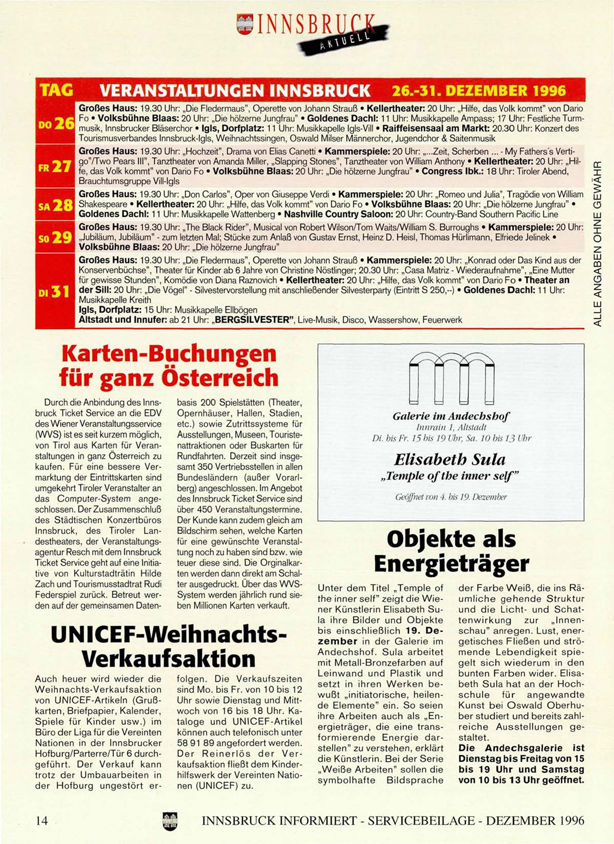 INNSBRUCK INFORMIERT - SERVICEBEILAGE - DEZEMBER 1996