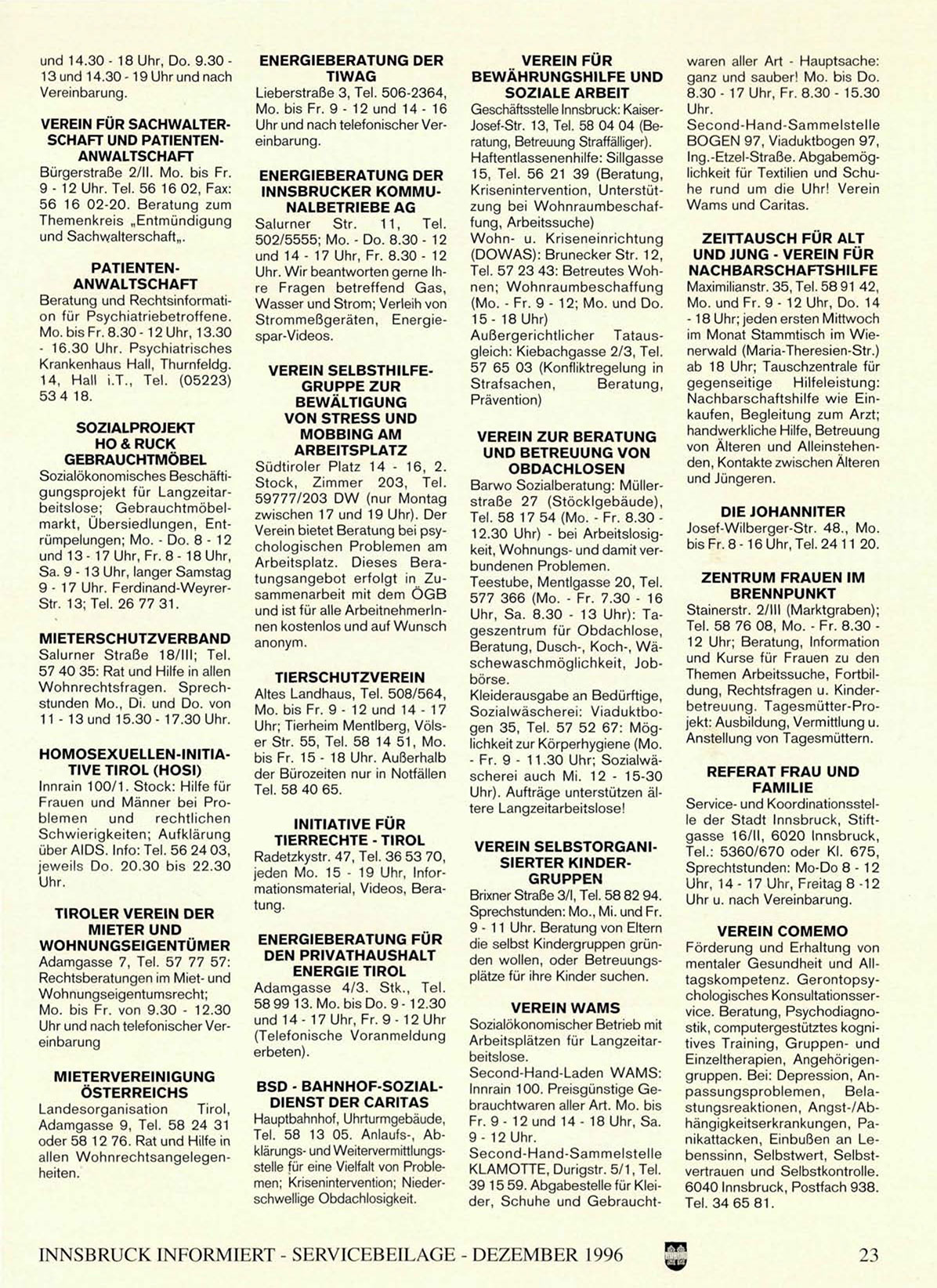 INNSBRUCK INFORMIERT - SERVICEBEILAGE - DEZEMBER 1996