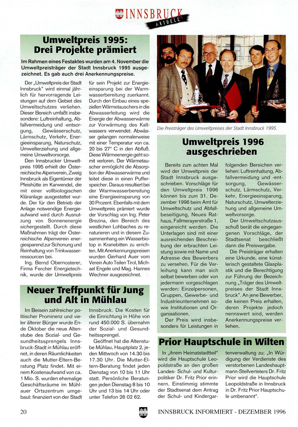 Umweltpreisträger der Stadt Innsbruck 1995 ausgezeichnet. Es gab auch drei Anerkennungspreise.
