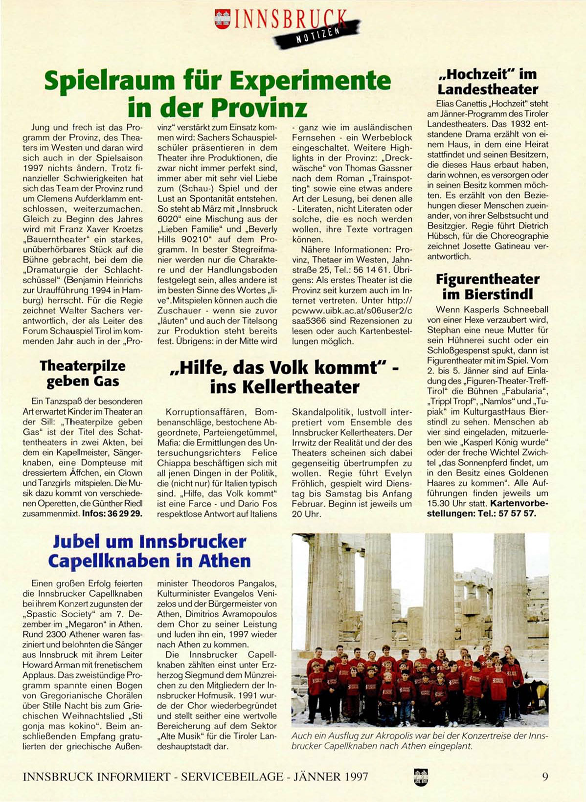INNSBRUCK INFORMIERT - SERVICEBEILAGE - JÄNNER 1997