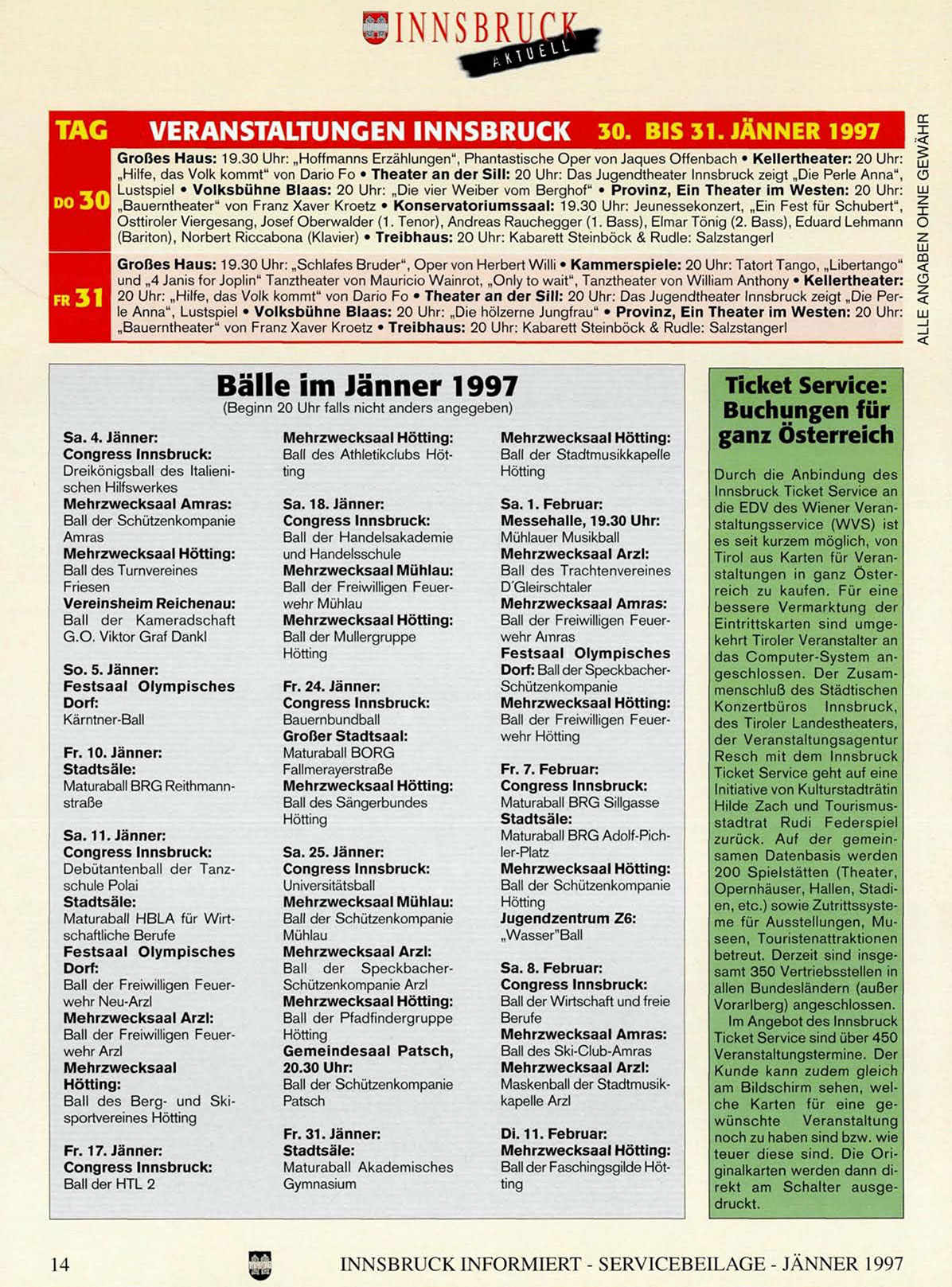 INNSBRUCK INFORMIERT - SERVICEBEILAGE - IÄNNER 1997