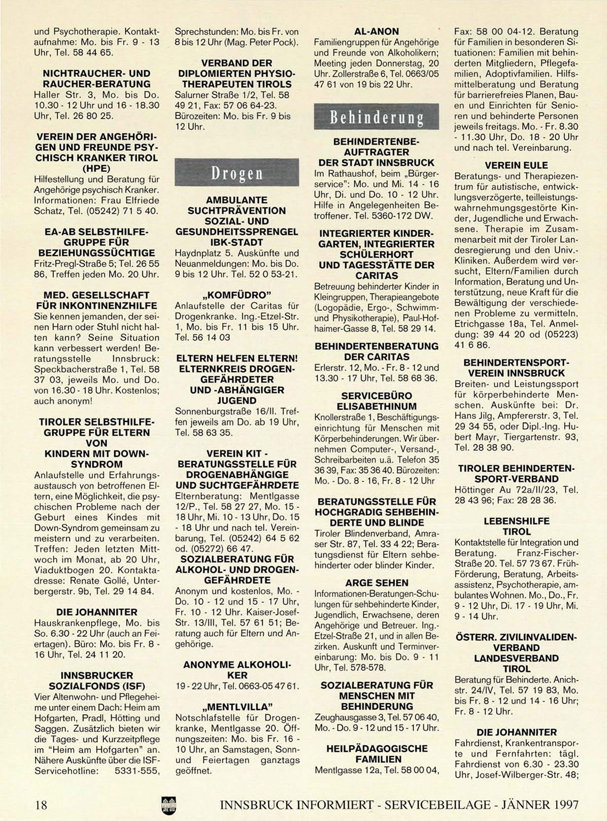 INNSBRUCK INFORMIERT - SERVICEBEILAGE - JÄNNER 1997