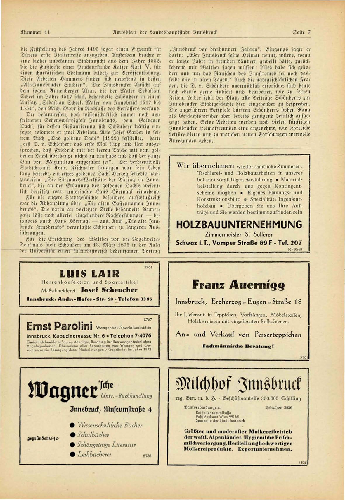 aus. ?l»ch „Dic alte I u n briicke Innsbrucks" veranlasite Schönherr "^n längeren Aussiihrungen.