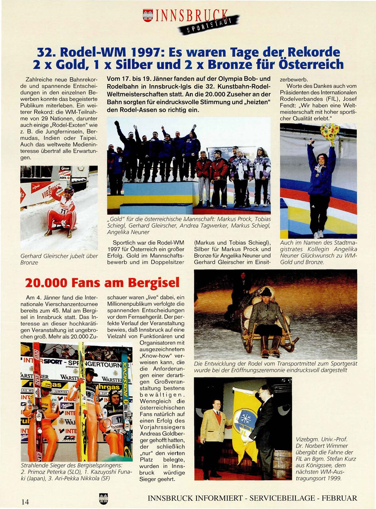 Rodelbahn in Innsbruck-Igls die 32. Kunstbahn-RodelWeltmeisterschaften statt. An die 20.000 Zuseher an der