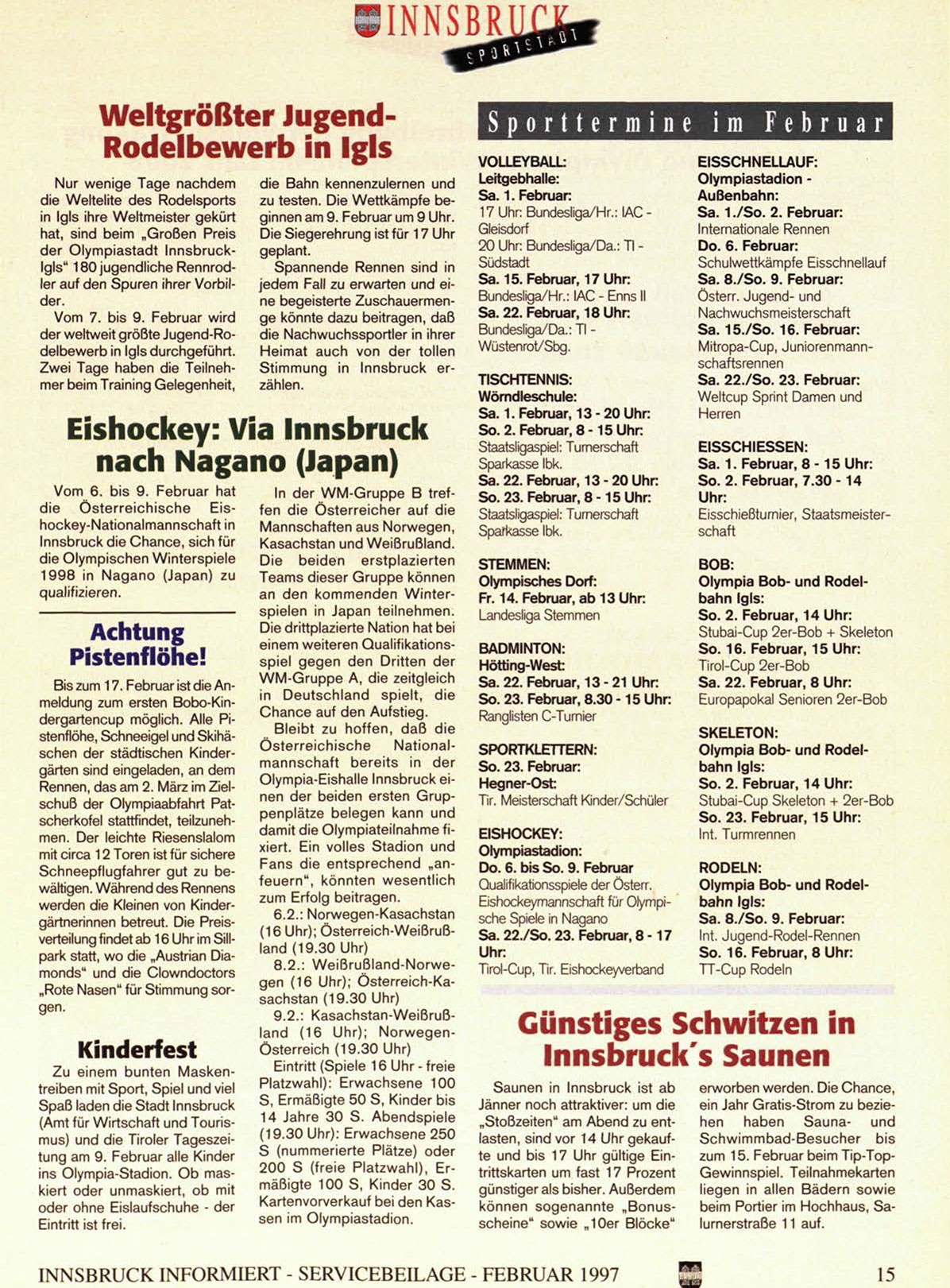 INNSBRUCK INFORMIERT - SERVICEBEILAGE - FEBRUAR 1997