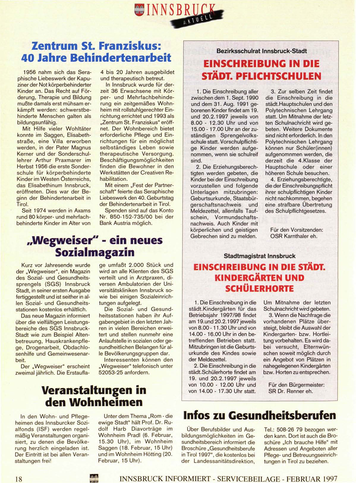 INNSBRUCK INFORMIERT - SERVICEBEILAGE - FEBRUAR 1997