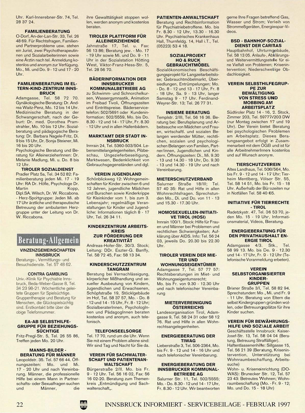 INNSBRUCK INFORMIERT - SERVICEBEILAGE - FEBRUAR 1997