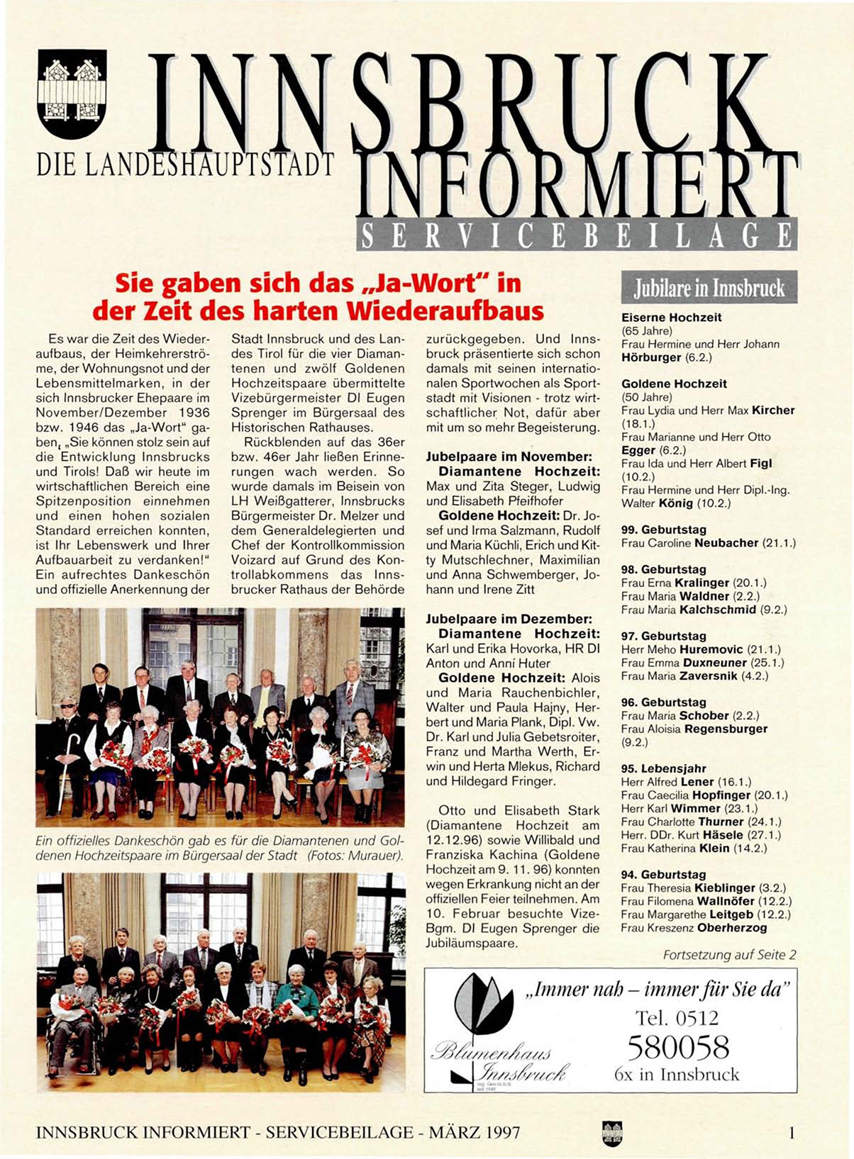 INNSBRUCK INFORMIERT - SERVICEBEILAGE - MÄRZ 1997