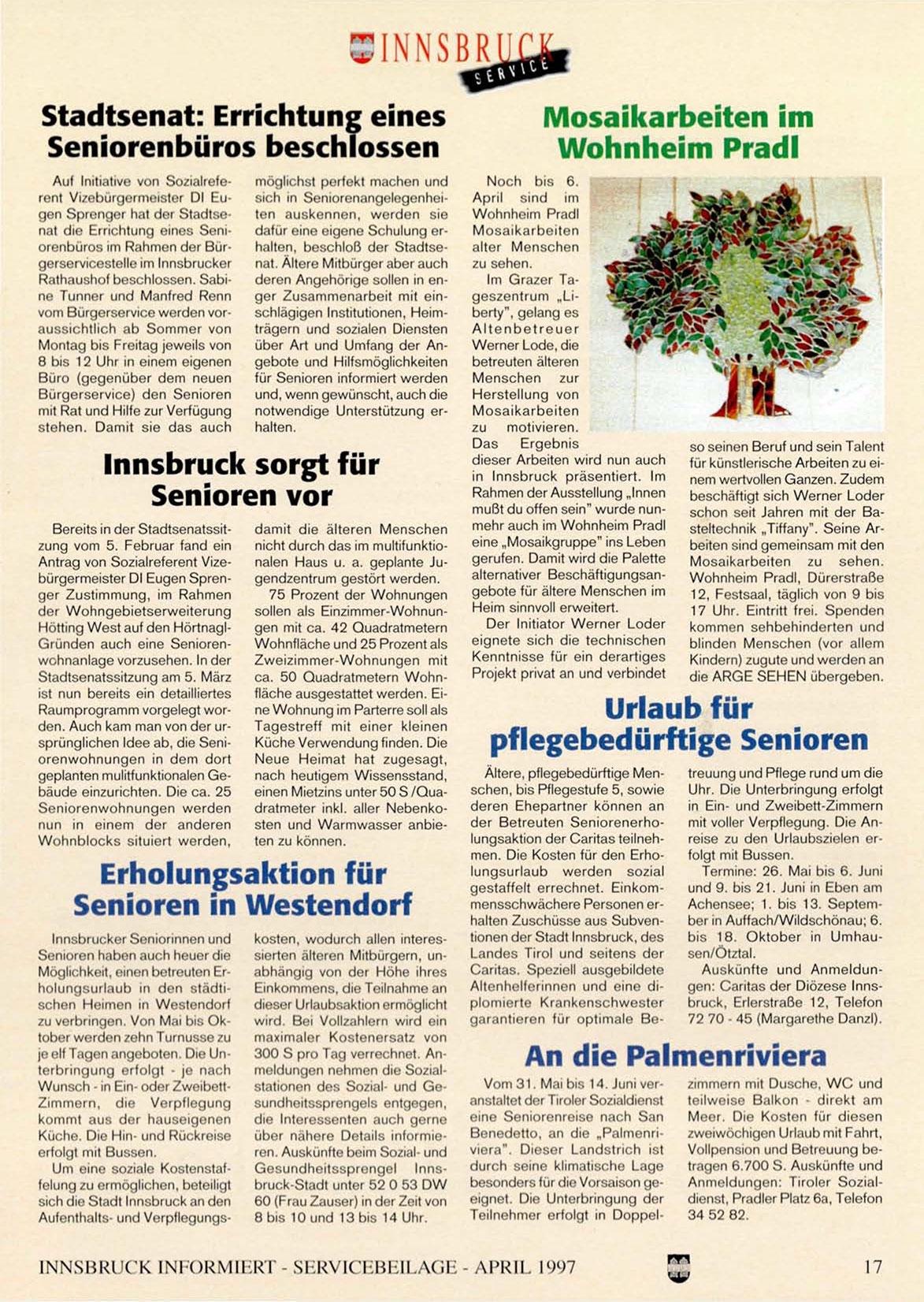 Anmeldungen: Tiroler Sozialdienst, Pradler Platz 6a, Telefon