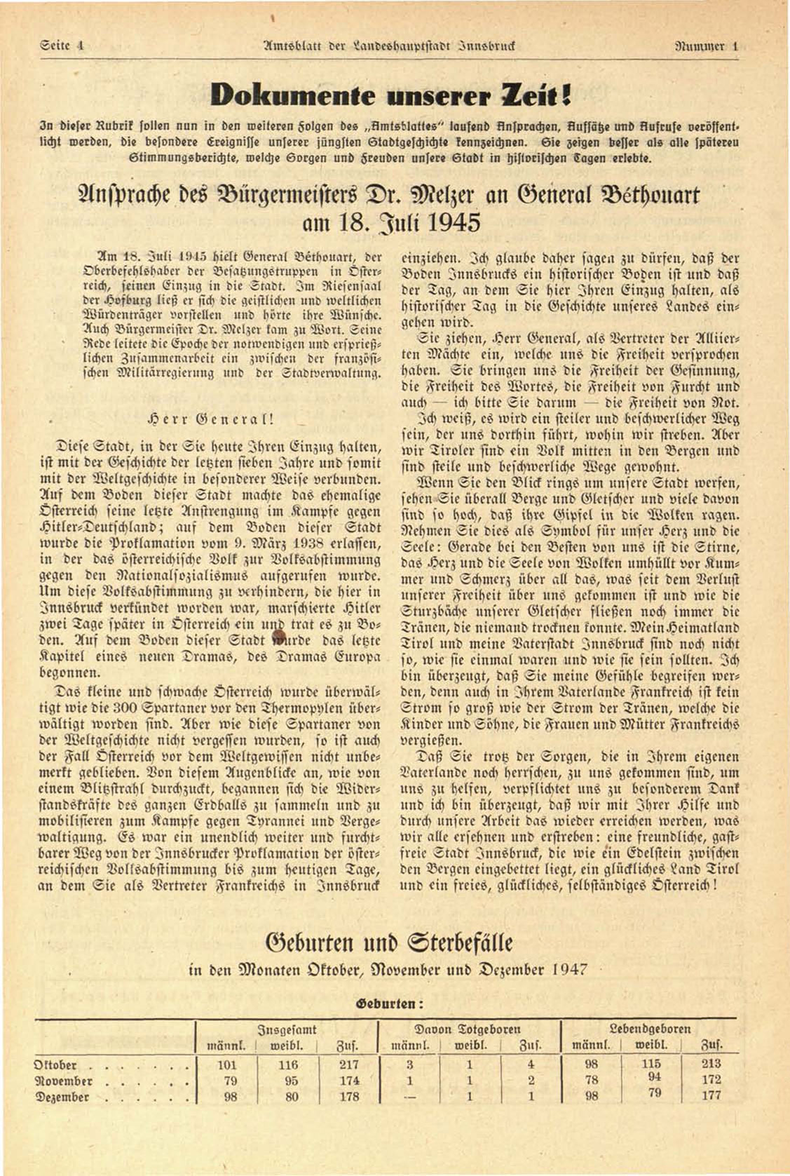 Am 1s. Juli 1945 hielt General Bethouart, der einziehen. Ich glaube daher sagen zu dürfen, daß der