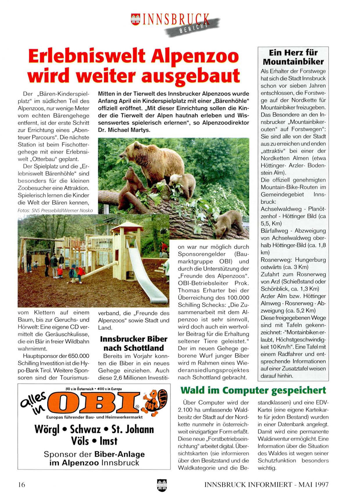 offiziell eröffnet. „Mit dieser Einrichtung sollen die Kinder die Tierwelt der Alpen hautnah erleben und Wissenswertes spielerisch erlernen", so Alpenzoodirektor