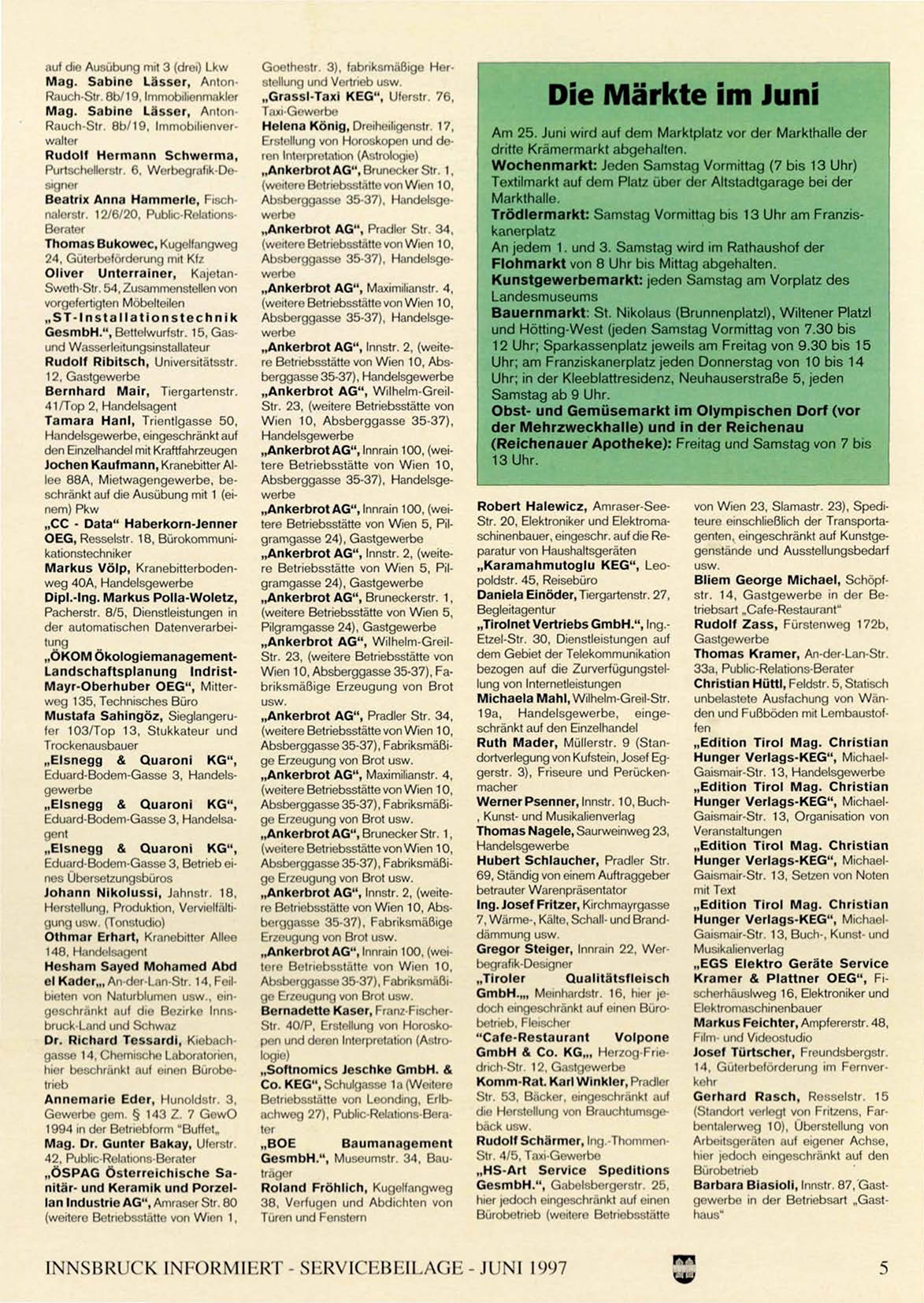 und Hötting-West (jeden Samstag Vormittag von 7.30 bis