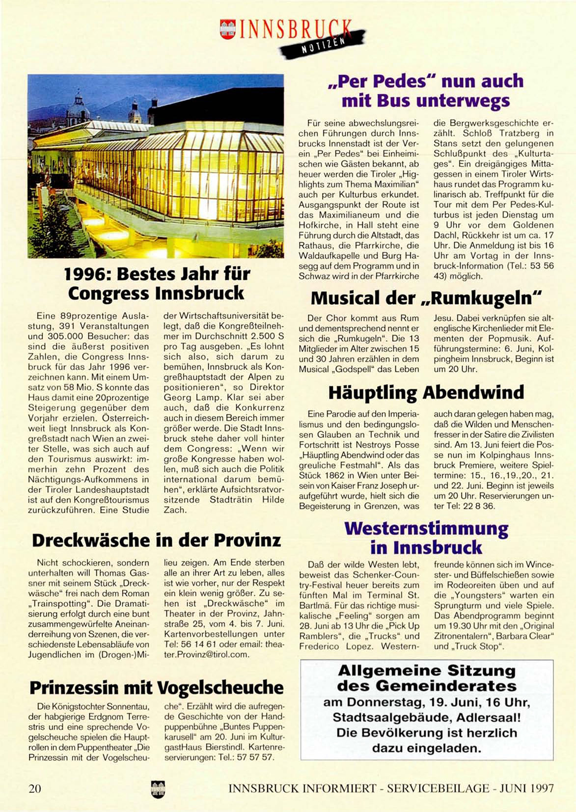 INNSBRUCK INI ÜRMIHR1 - SüRVICüBIilLAGli - JUNI 1997