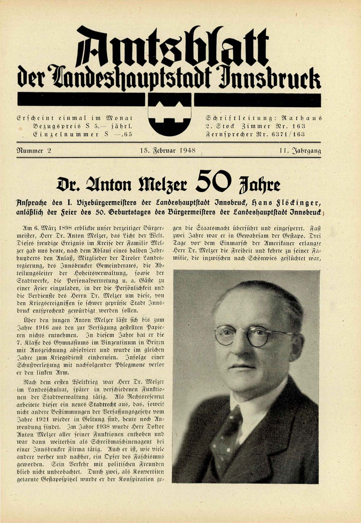 anlaßlich der Keier des 50. Geburtstages des Bürgermeisters der Landeshauptstadt Innsbruck