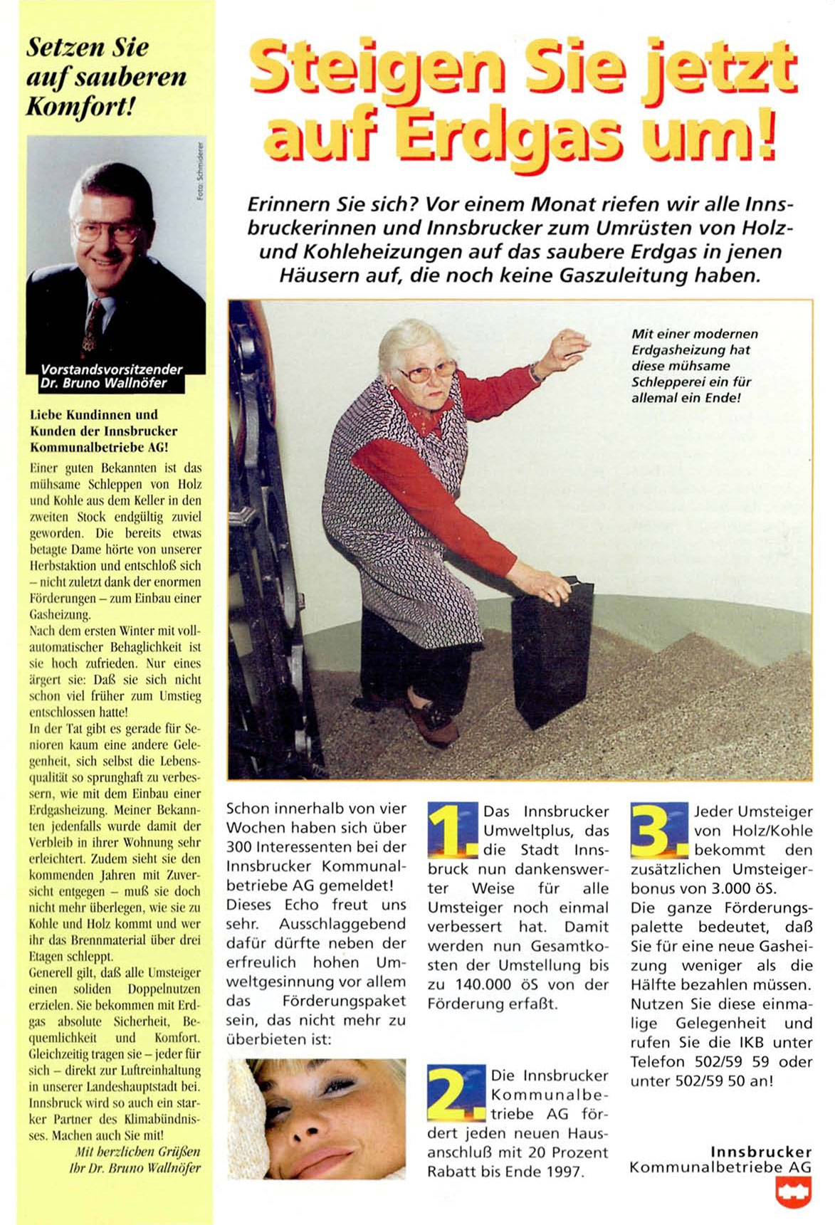 Erinnern Sie sich? Vor einem Monat riefen wir alle Innsbruckerinnen und Innsbrucker zum Umrüsten von Holzund Kohleheizungen auf das saubere Erdgas in jenen