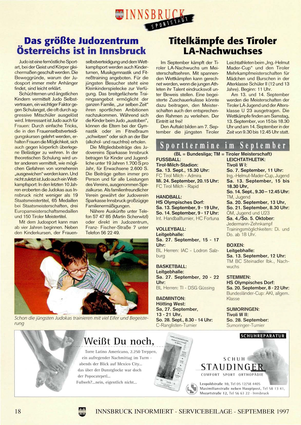 nicht zuletzt ist Judo auch ein Wettkampfsport: In den letzten 10 Jahren eroberten die Judokas aus Innsbruck nicht weniger als 19