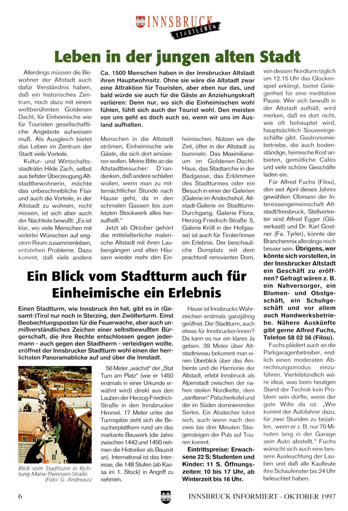 gewählten Obmann der Interessengemeinschaft Altstadt/Innsbruck, Stellvertreter sind Alfred Egger (Gläserkastl) und Dr. Karl Gostner (Fa. Tyrler), könnte der