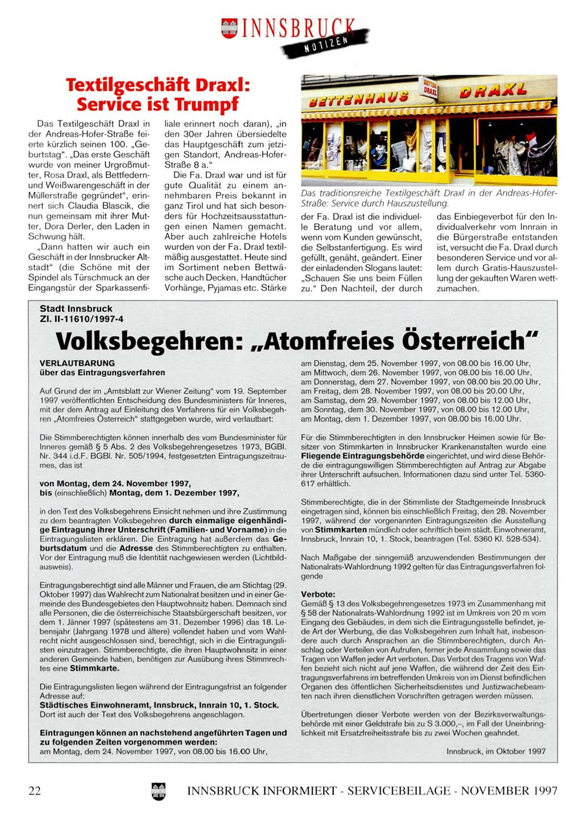 INNSBRUCK INFORMIERT - SERVICEBEILAGE - NOVEMBER 1997