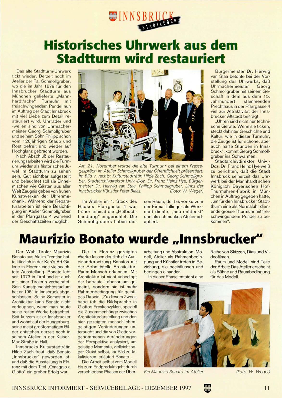 Stadtarchivdirektor Univ.Am 21. November wurde die alte Turmuhr bei einem Presse- Doz. Dr. Franz Heinz Hye weiß