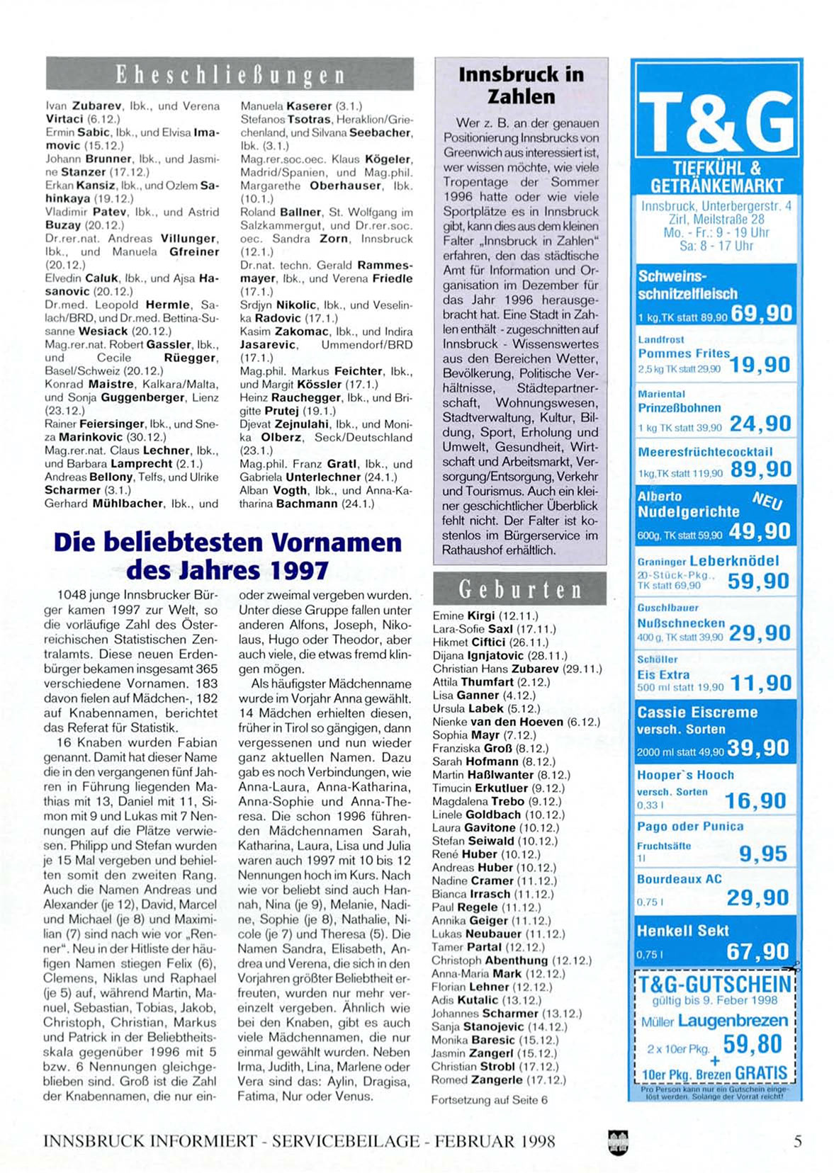 1048 junge Innsbrucker Bürger kamen 1997 zur Welt, so