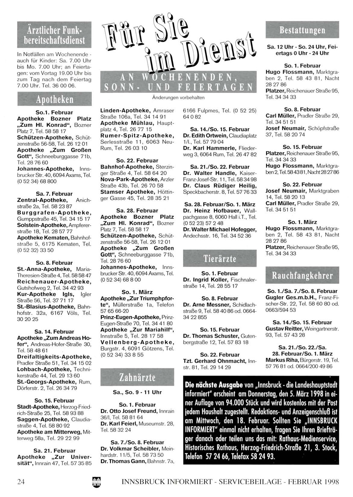 informiert" erscheint am Donnerstag, den 5. März 1998 in einer Auflage von 94.000 Stück und wird kostenlos mit der Post