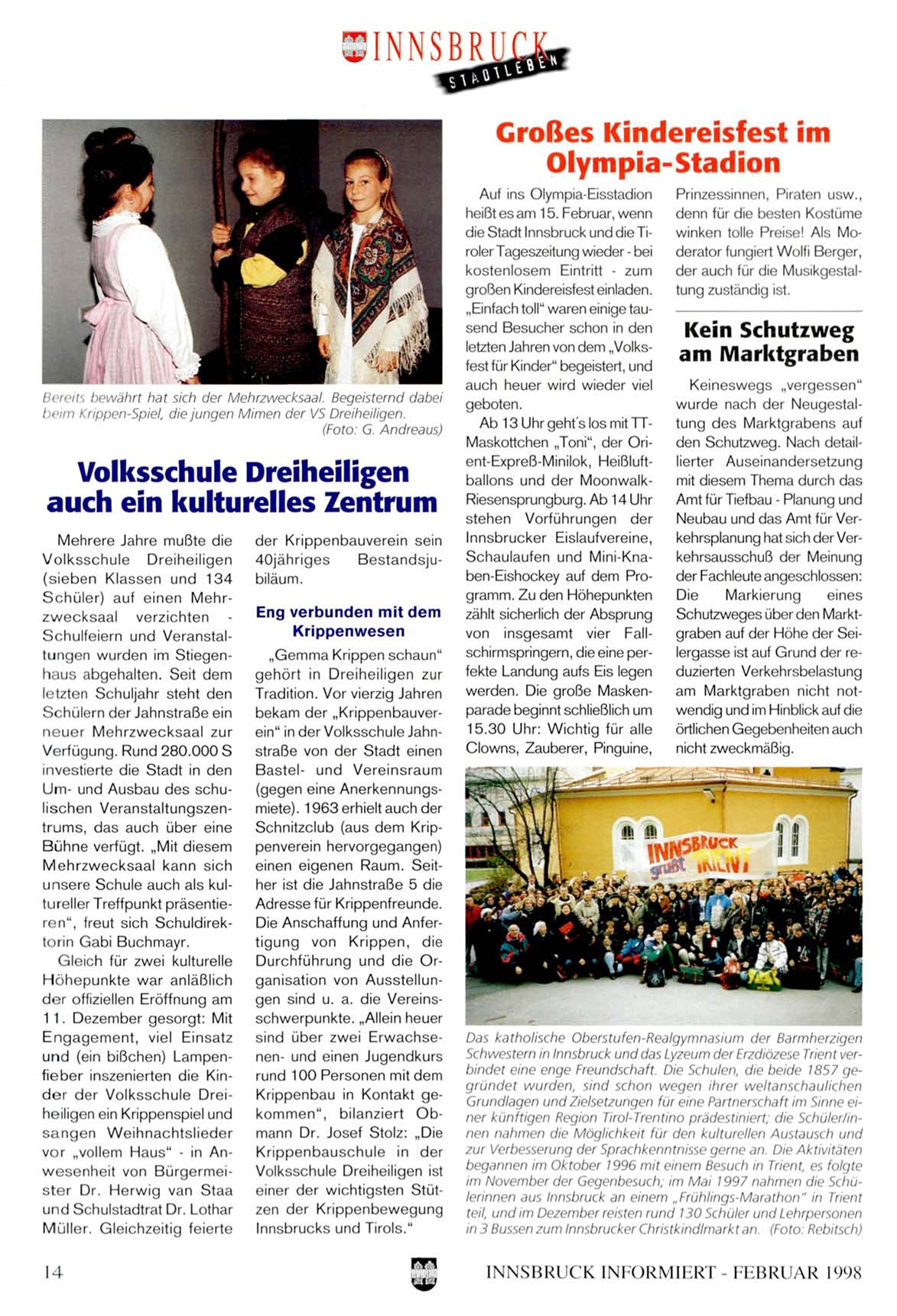 im November der Gegenbesuch; im Mai 1997 nahmen die Schülerinnen aus Innsbruck an einem „Frühlings-Marathon" in Trient