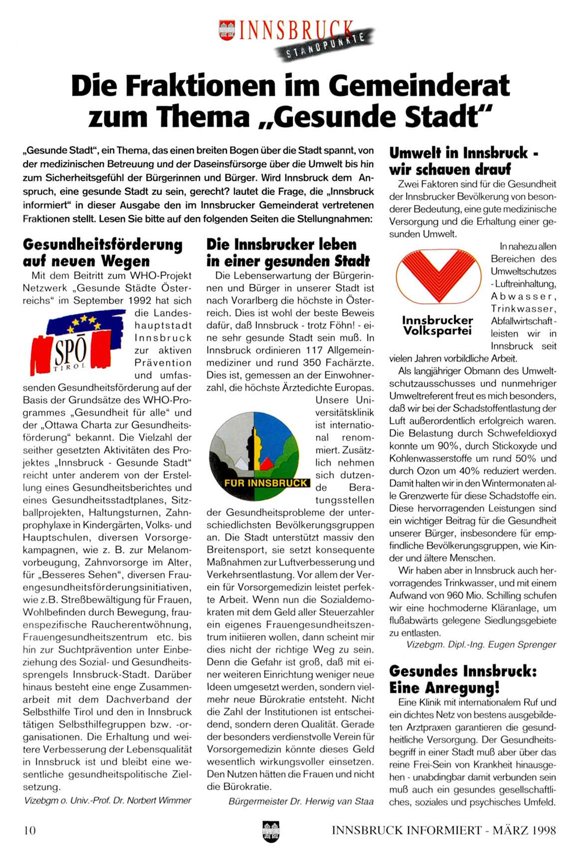 in Innsbruck ist und bleibt eine wesentliche gesundhoitspolitischo Zielsetzung.