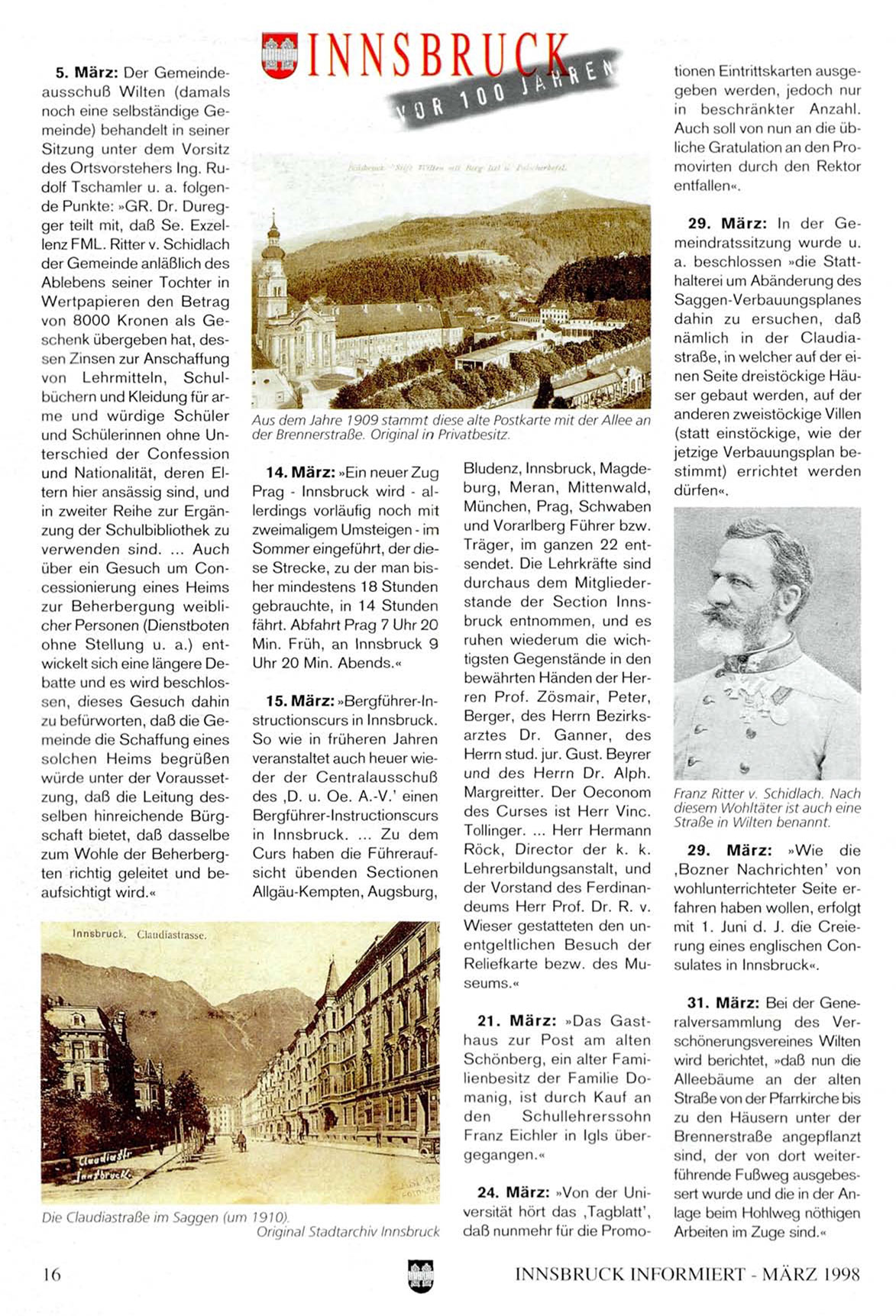 des Ortsvorstehers Ing. Rudolf Tschamler u. a. folgende Punkte: »GR. Dr. Duregger teilt mit, daß Se. Exzellenz FML. Ritter v. Schidlach