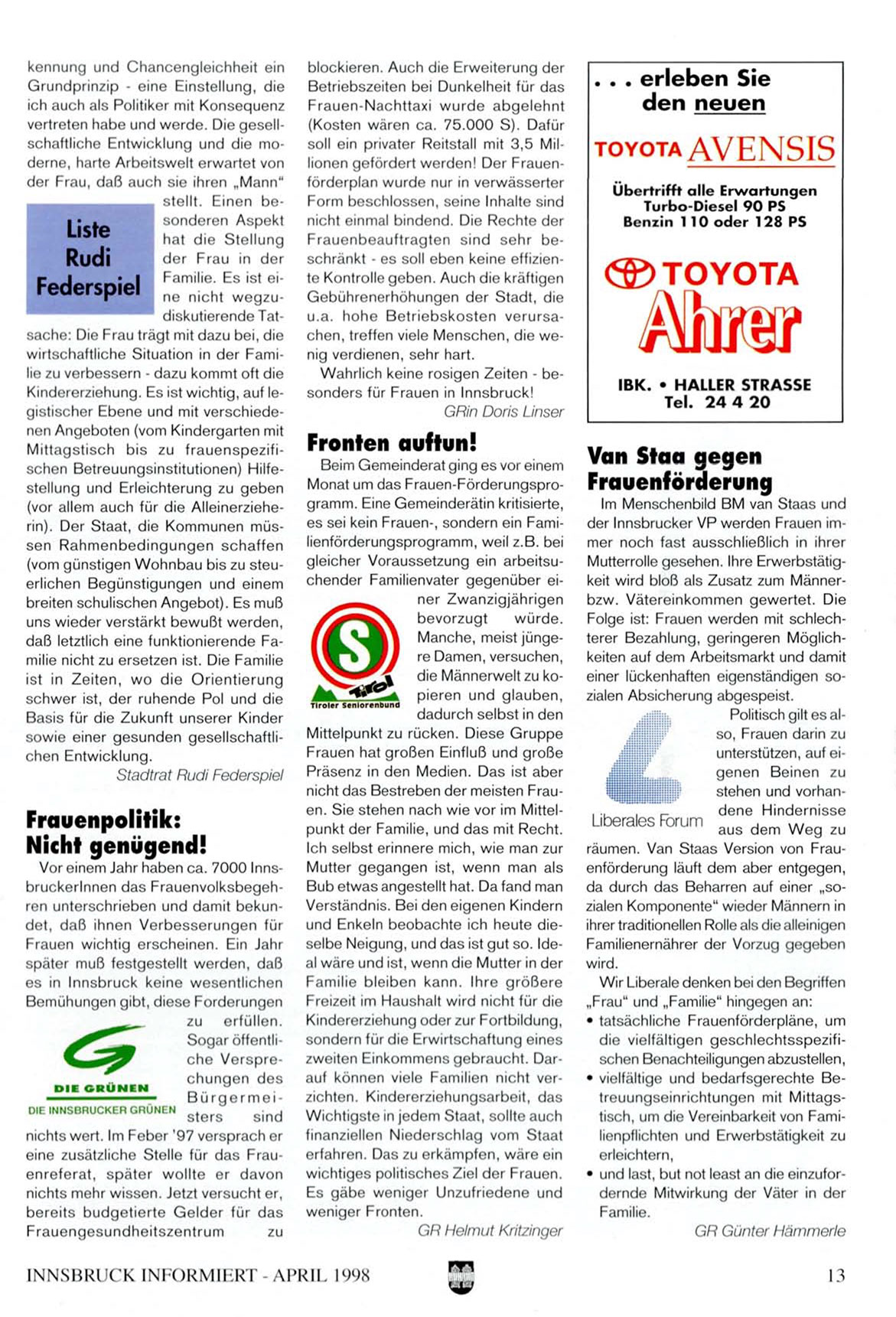 Monat um das Frauen-Förderungsprogramm. Eine Gemeinderätin kritisierte,