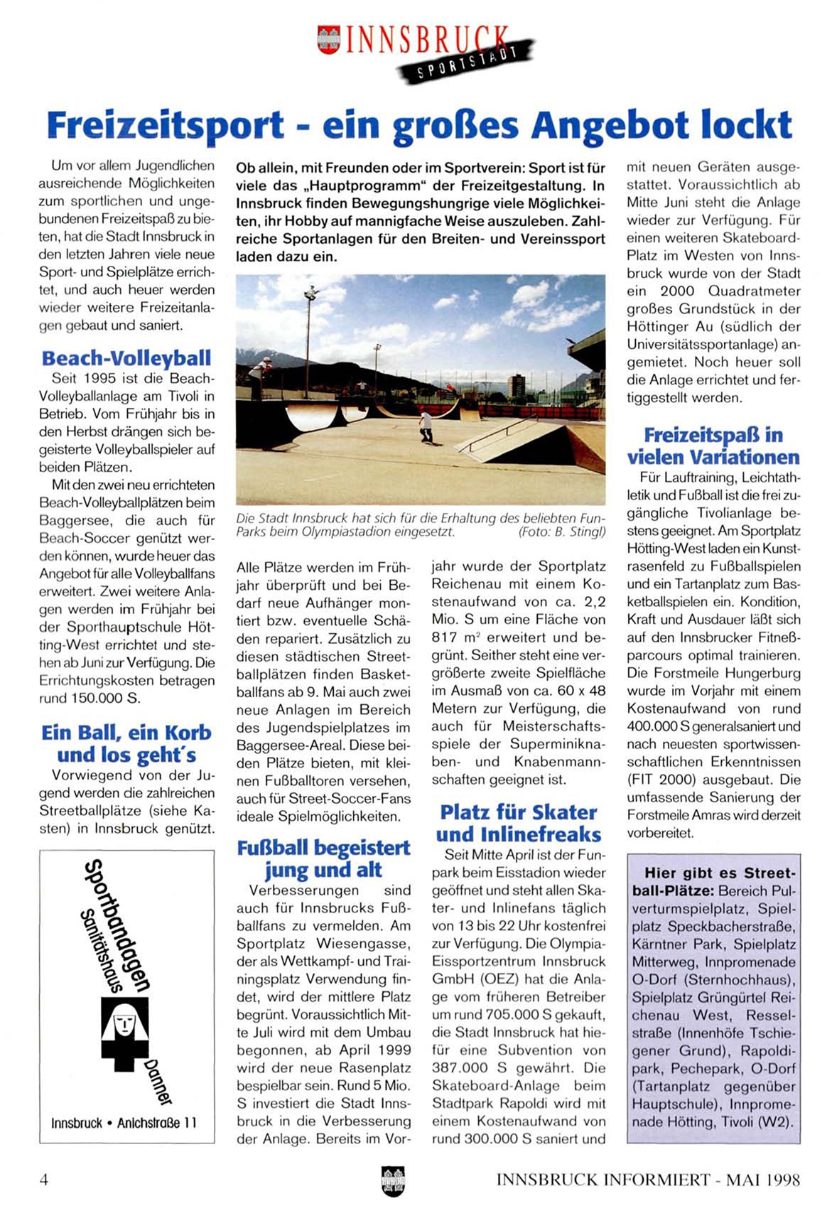 zum sportlichen und ungebundenen Freizeitspaß zu bieten, hat die Stadt Innsbruck in