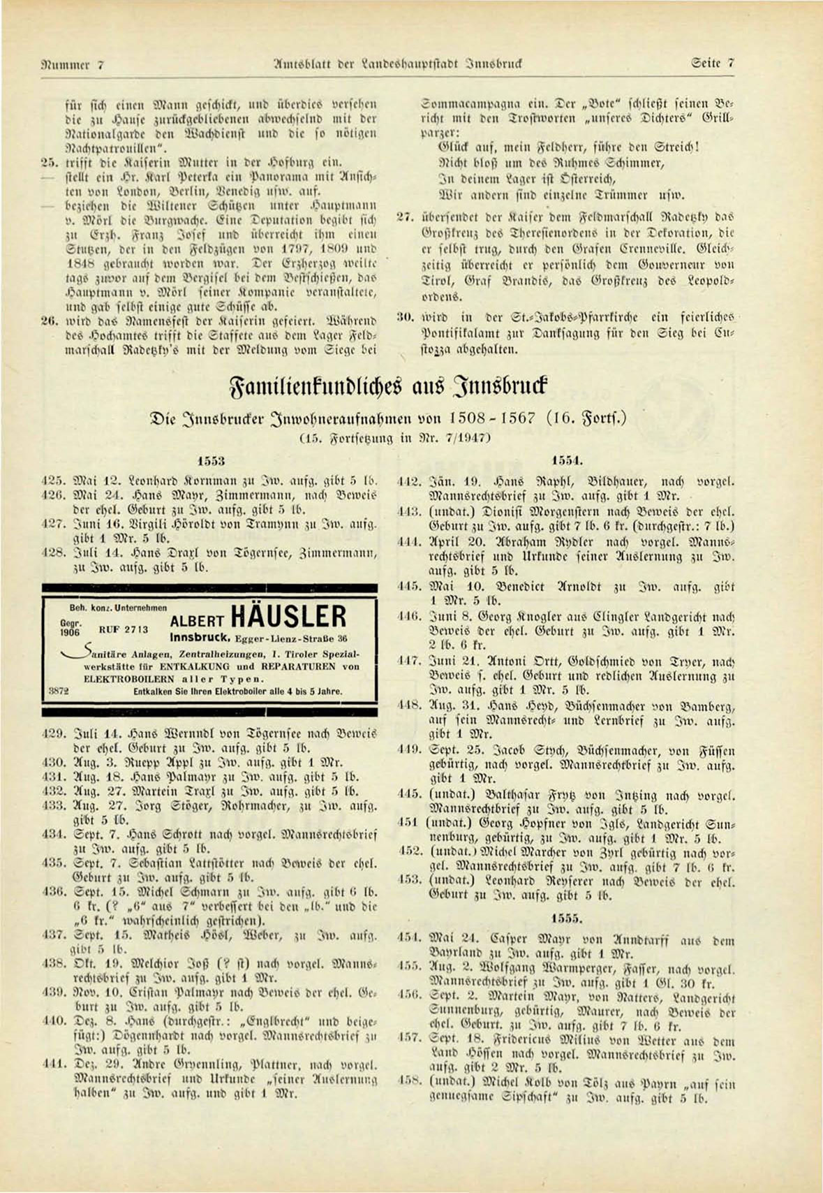Die Iunobrucker Inwohncraufnahmen von 1508- 1567 (16. Forts.)