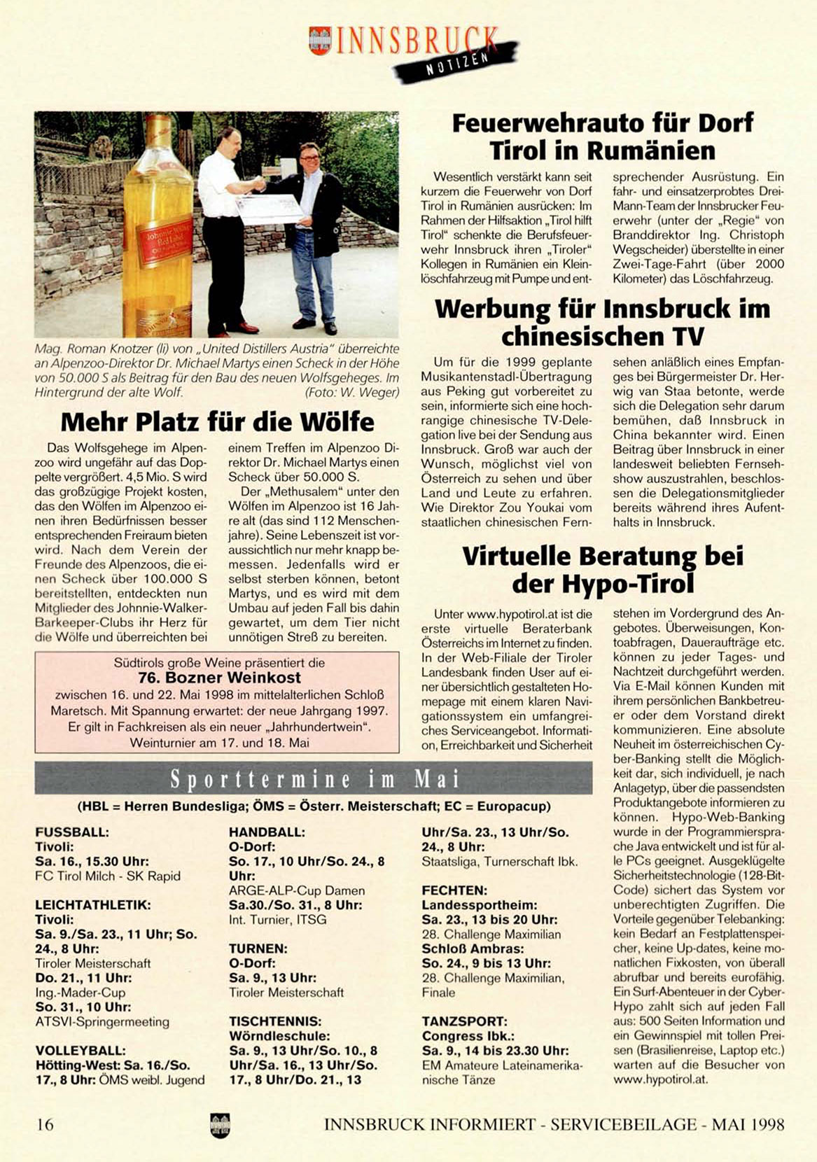an Alpenzoo-Direktor Dr. Michael Martys einen Scheck in der Höhe Um für die 1999 geplante