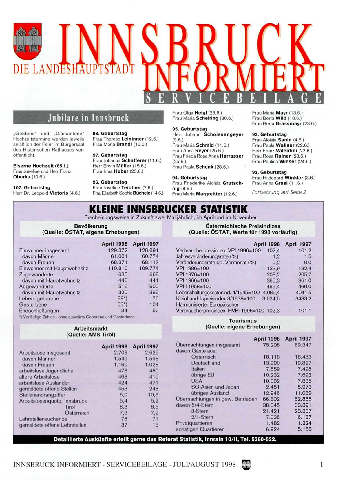Detaillierte Auskünfte erteilt gerne das Referat Statistik, Innrain 10/11, Tel. 5360-522.