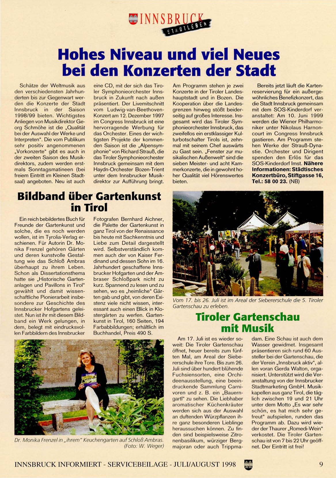INNSBRUCK INFORMIERT-SLiRVICKBKILAGIi- JULI/AUGUST 1998