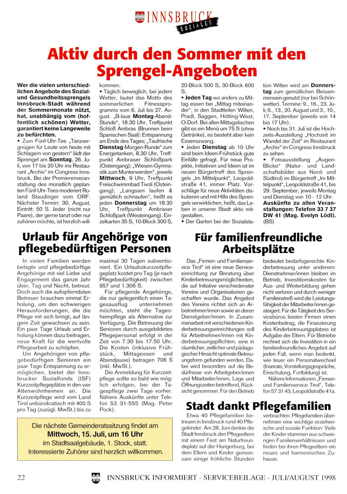 INNSBRUCK INFORMIERT - SERVlCEBElLAGi; - JULI/AUGUST 1998
